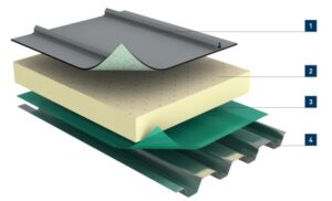 1 – Vodonepropusni sloj (krovna membrana) – npr. PVC, TPO, EPDM