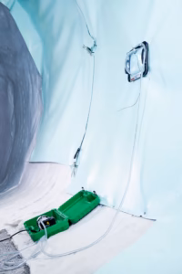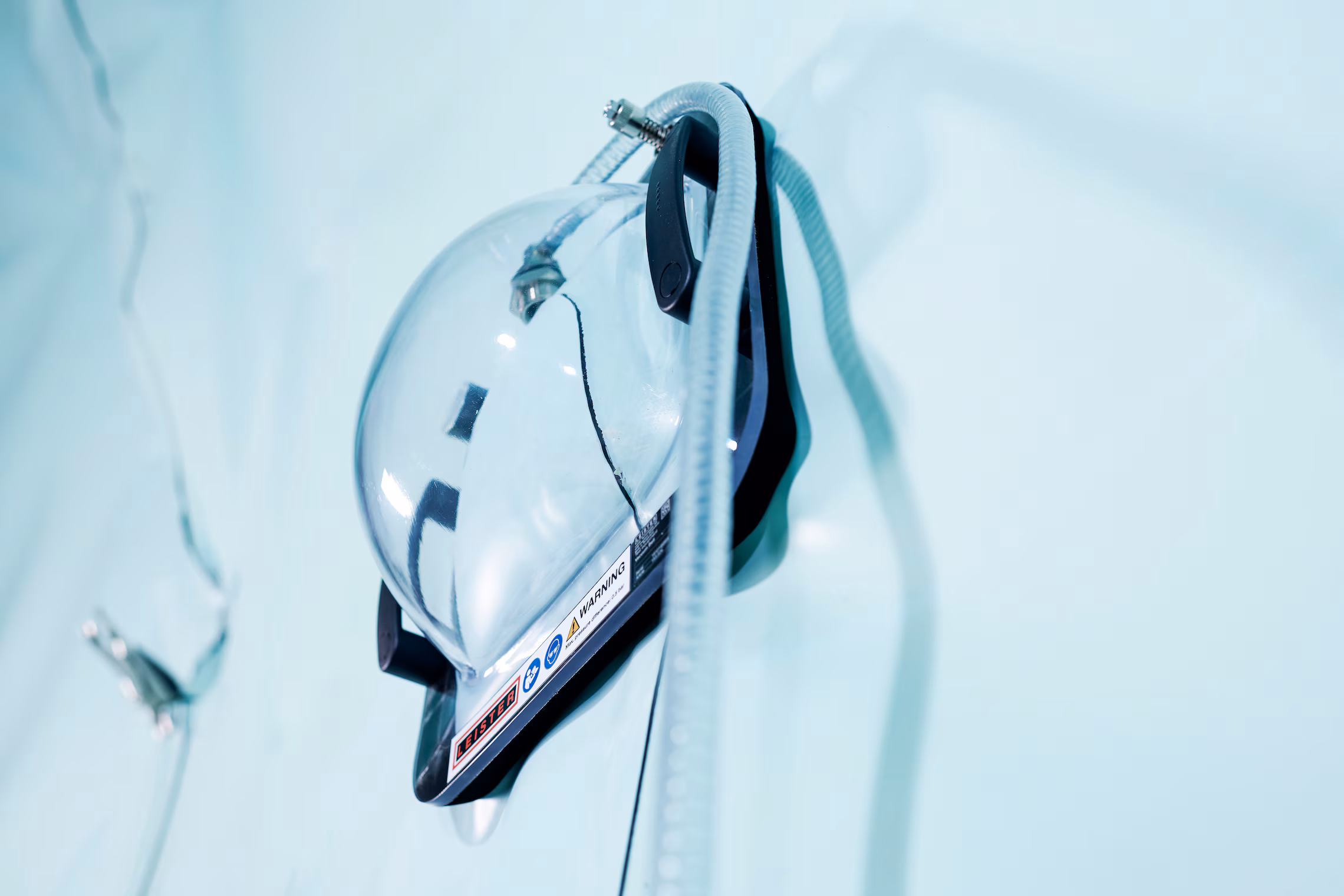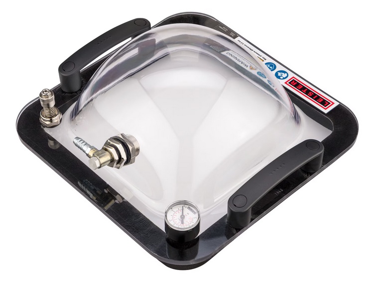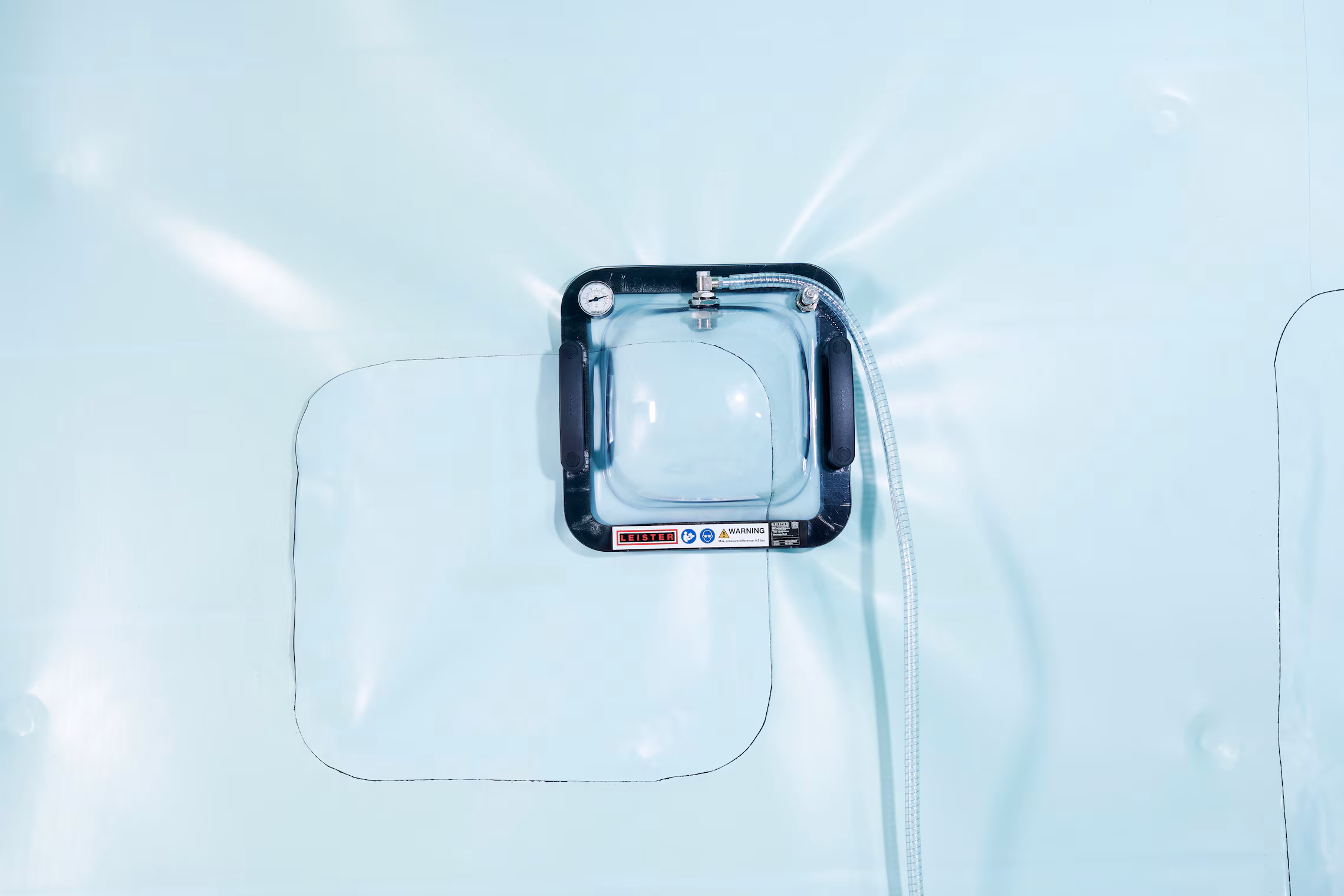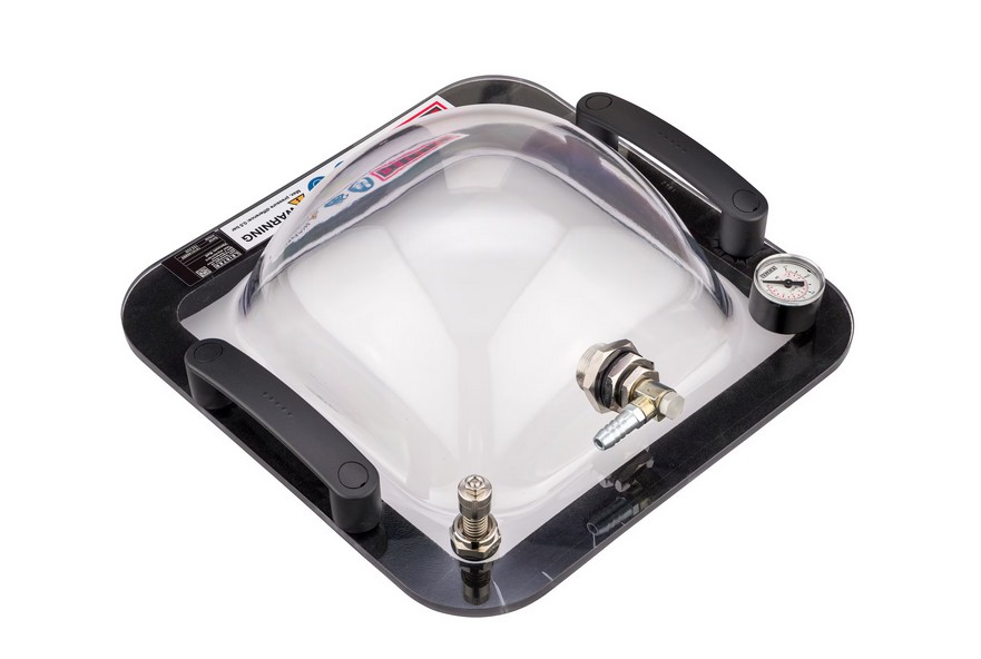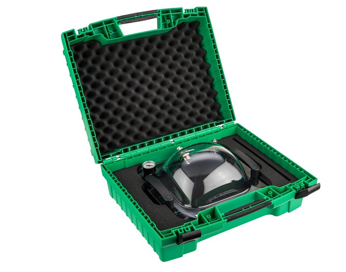 Leister VAKUUMSKO ZVONO je plastično zvono kompanije za proveru i osiguravanje nepropusnosti preklopnih zavarenih spojeva i sastava membrana. Ovaj uređaj se posebno koristi u izgradnji deponija i tunela. Vakuum potreban za ispitivanje curenja idealno se generiše pomoću VAKUUMSKE PUMPE kompanije Lajster. Greške u zavarenim spojevima se pouzdano otkrivaju pomoću VAKUUMSKE PUMPE. Posebno tokom izgradnje tunela i deponija, nepravilnosti u zavarenom spoju moraju se izbegavati kako bi se isključio nedostatak kvaliteta i sprečila kasnija oštećenja.