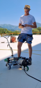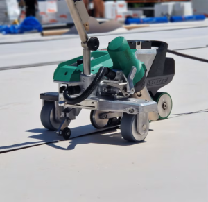 VARIMAT 300 ostaje precizno na kursu prilikom zavarivanja ravnih krovova zahvaljujući trouglastom dizajnu i promenljivoj transportnoj osiovini